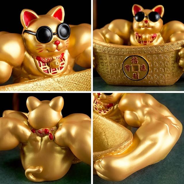 [在台現貨+發票]招財貓 聚寶盆 金元寶 麒麟臂招財貓 開運 暴富 健美招財貓 巨臂 收納盒 交換禮物 生日禮物