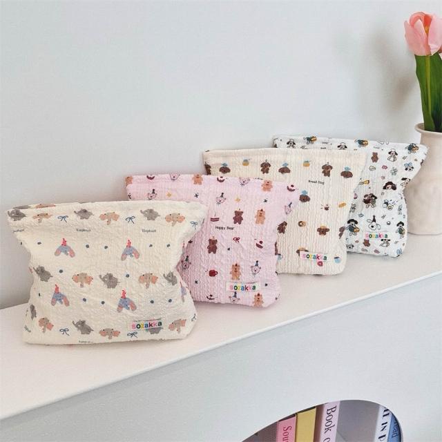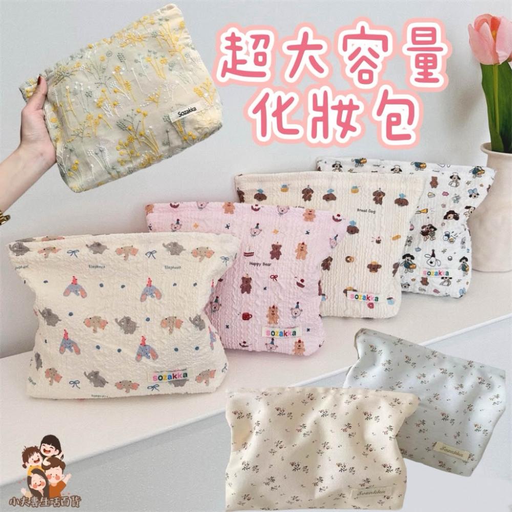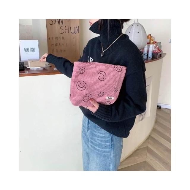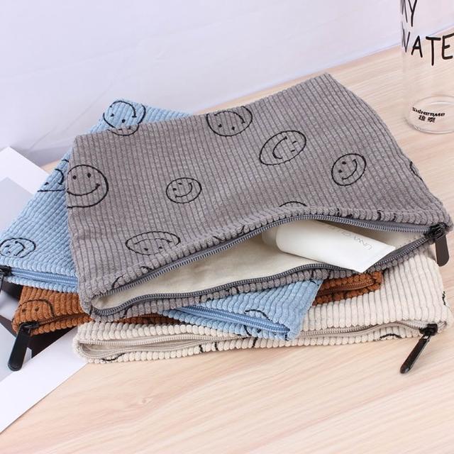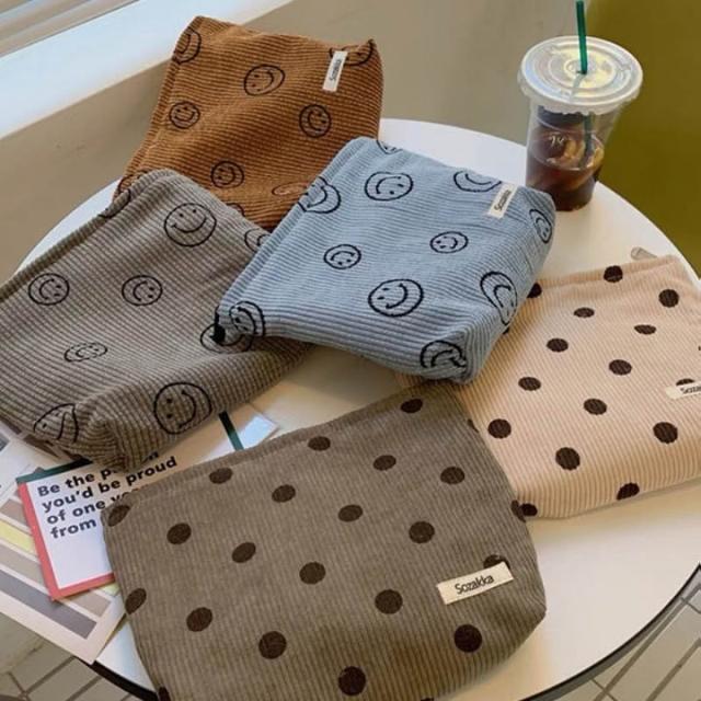 [在台現貨+發票]燈芯絨化妝包 帆布化妝包 大容量化妝包 化妝包 提花化妝包 笑臉化妝包 手拿袋 點點化妝包 旅行收納
