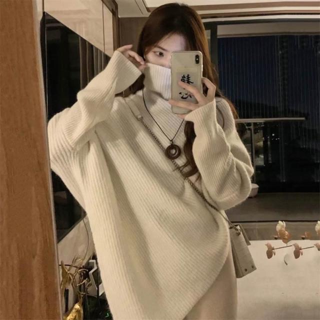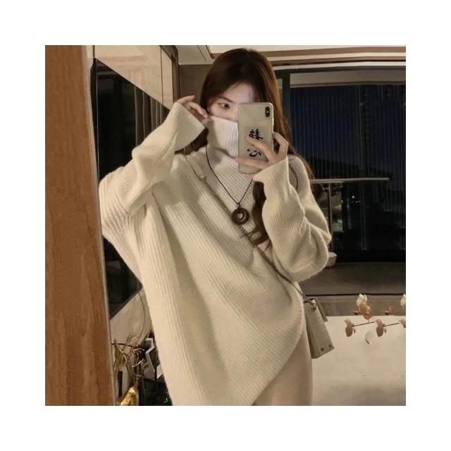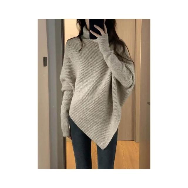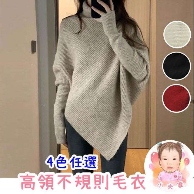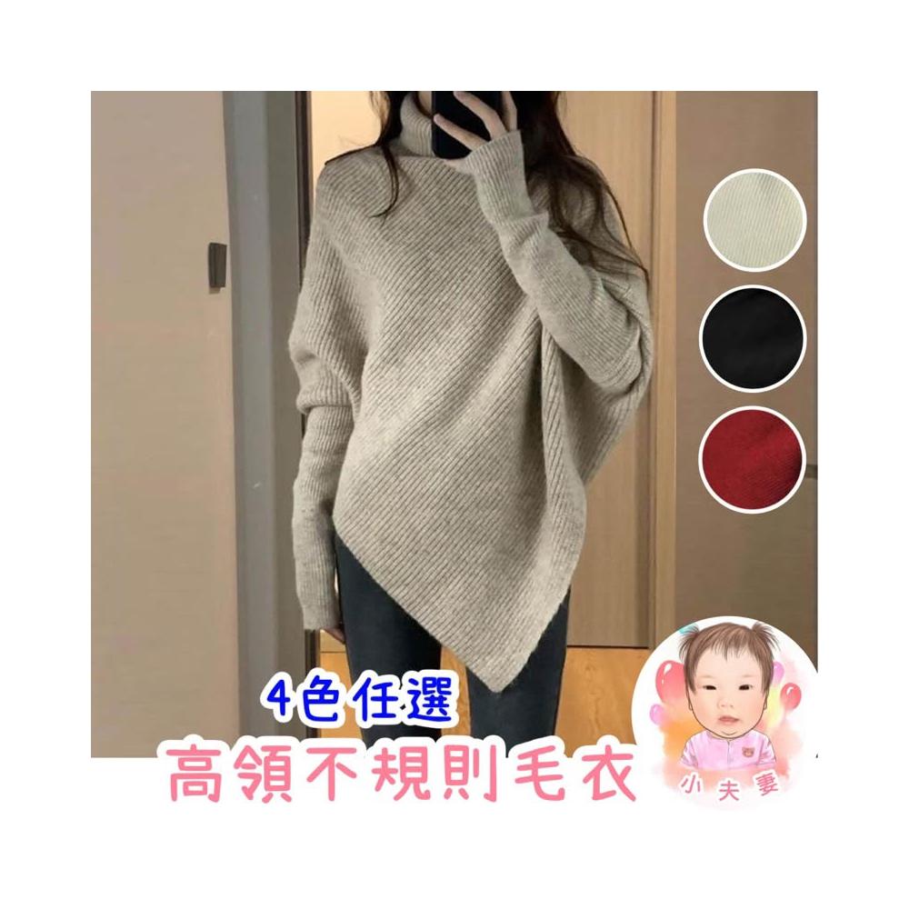 [在台現貨+發票]高領毛衣 毛衣 高領不規則毛衣 保暖毛衣 針織 顯瘦 修飾 慵懶風 百搭 韓風 冬季 上衣 衣服 女裝