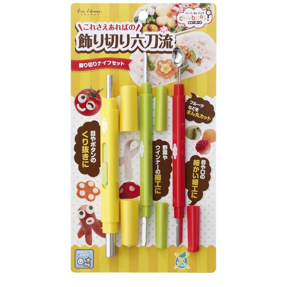 KAI 貝印食物裝飾雕刻刀(3支組)(食物雕刻刀 圓球刀 直刀 圓洞刀 UV刀)
