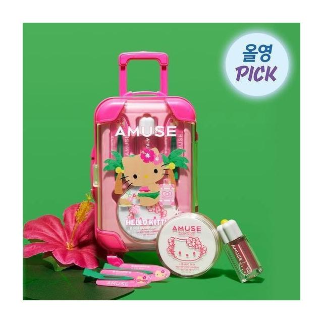 AMUSEHello Kitty聯名 行李造型化妝組 旅行化妝組 氣墊粉餅 hello kitty 唇釉 彩妝盤