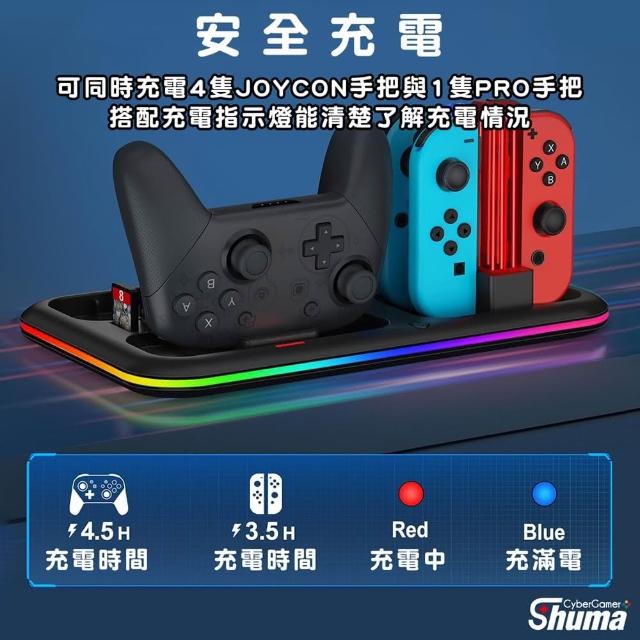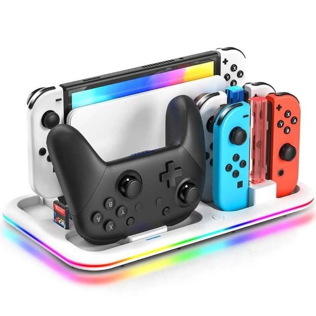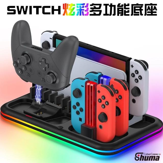 SWITCH 多功能底座 ( 充電座 直立架 卡匣收納 手把充電 電競燈光 主機收納 ) 數碼遊戲