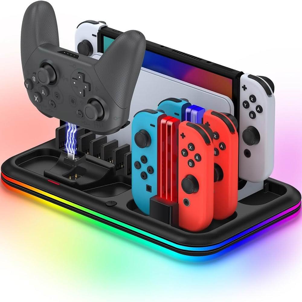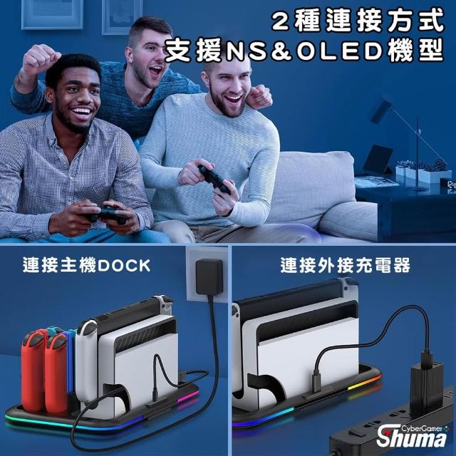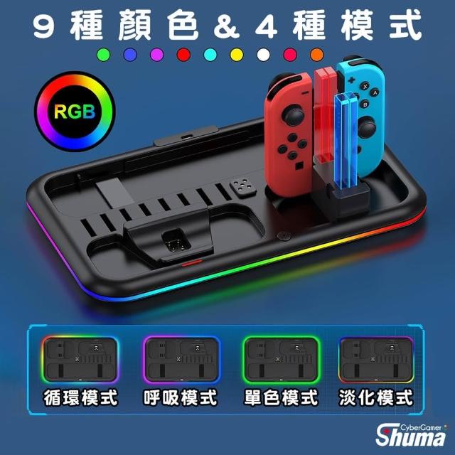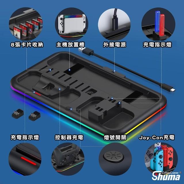 SWITCH 多功能底座 ( 充電座 直立架 卡匣收納 手把充電 電競燈光 主機收納 ) 數碼遊戲