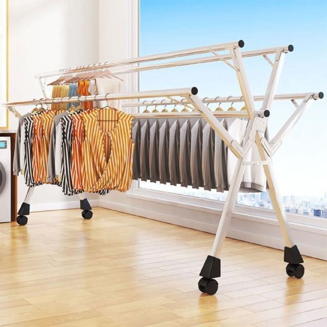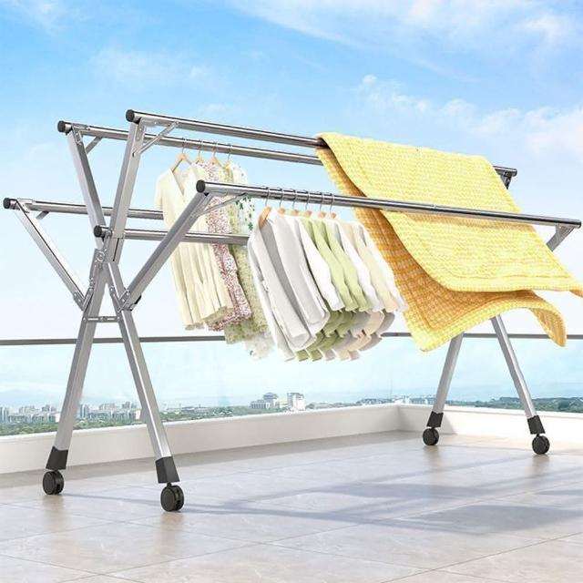 菲歐娜W型曬衣架 落地晾衣架 摺疊晾衣桿 不鏽鋼晾衣架 室內外曬衣架 多杆陽台掛衣架 伸縮晾衣杆 晾曬架