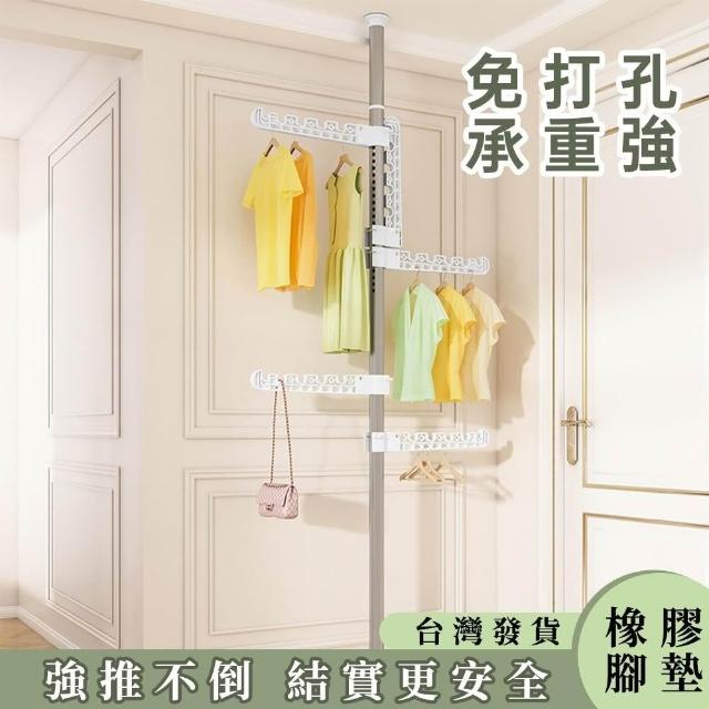 菲歐娜台灣現貨 免打孔頂天立地衣帽架 頂天立地衣架 衣帽架 掛衣架 衣帽架 伸縮桿 曬衣桿 晾衣架 曬衣架