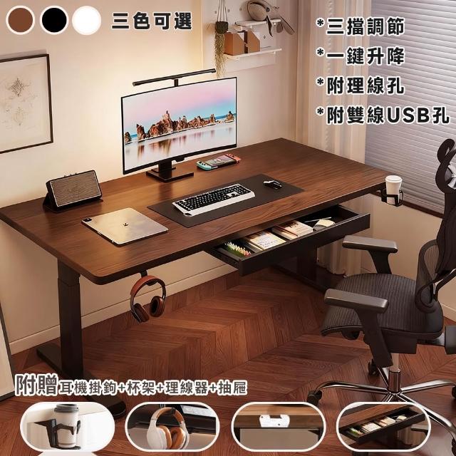 菲歐娜電動升降桌-附抽屜 100/120/140/160CM 升降書桌 升降電腦桌 辦公桌 站立桌 工作桌 學習桌 電競桌
