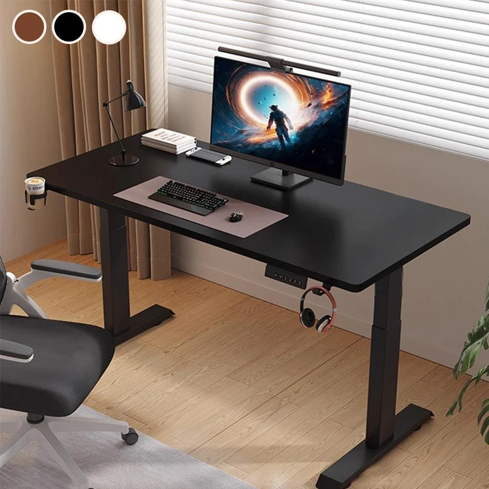 菲歐娜電動無段式升降桌 ️100/120/140/160CM 實木芯板 辦公桌 站立桌 電動辦公桌 升降電腦桌 實木書桌