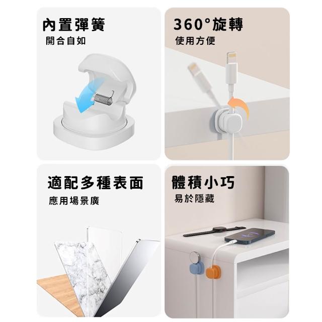 菲歐娜360°旋轉理線器 桌面數據線收納/整理集線/手機充電線夾/彈簧固定理線器