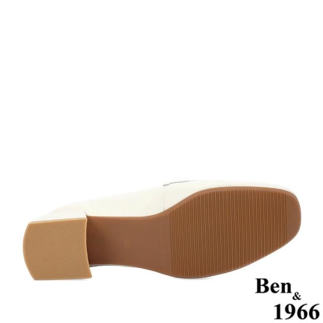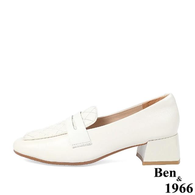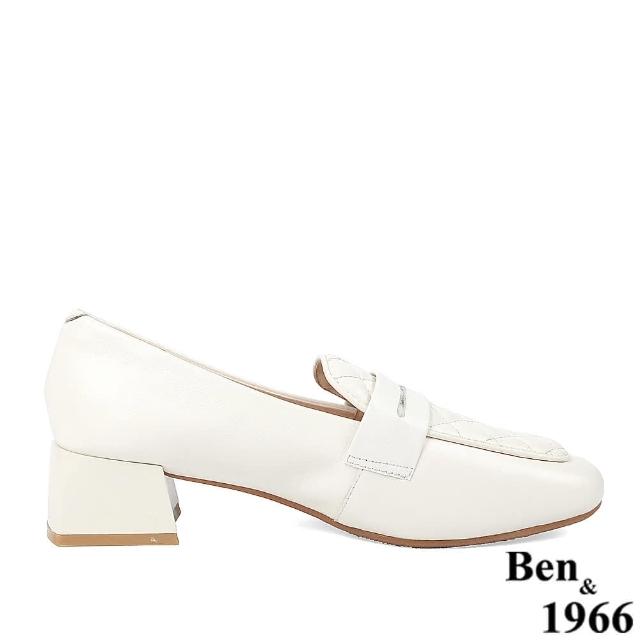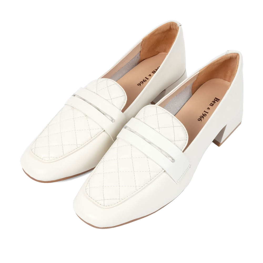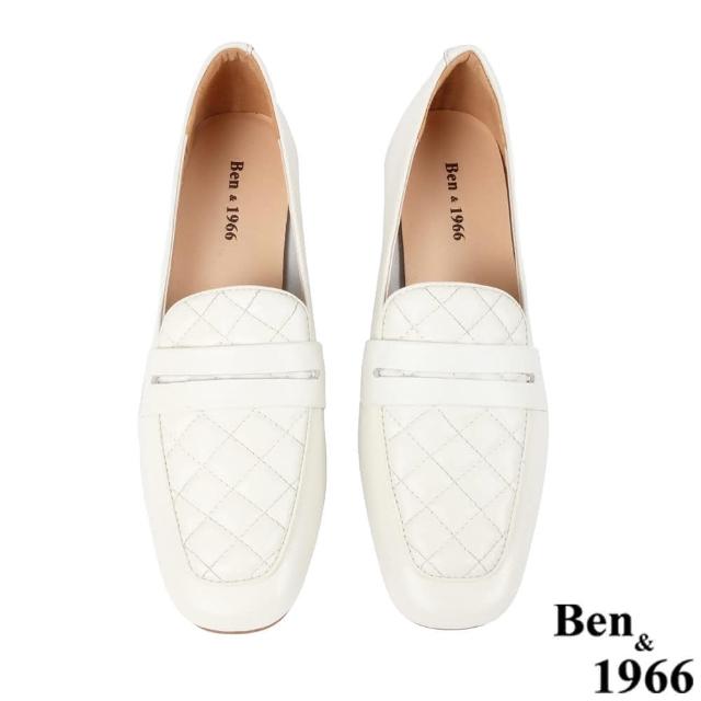 Ben&1966高級頭層牛皮氣質格紋樂福鞋-米白228193