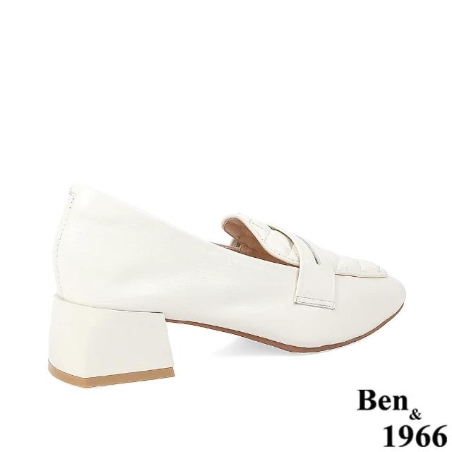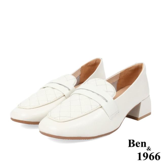 Ben&1966高級頭層牛皮氣質格紋樂福鞋-米白228193