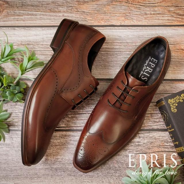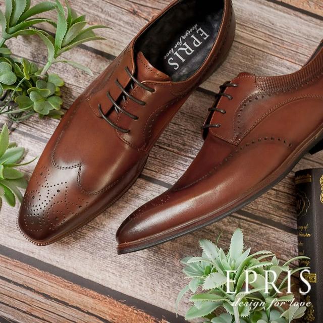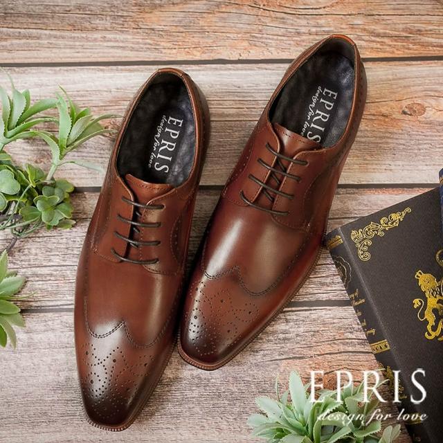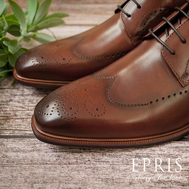 EPRIS 艾佩絲現貨 經典款皮鞋 復古雕花手工皮鞋 紳士皮鞋 咖啡色皮鞋 德比鞋 西裝穿搭-深栗色
