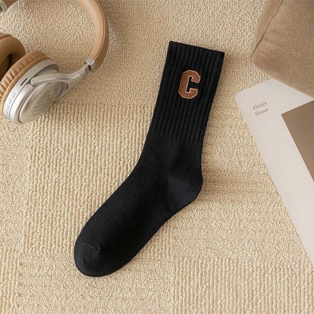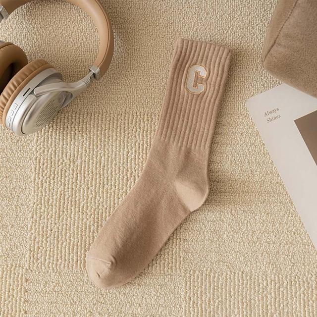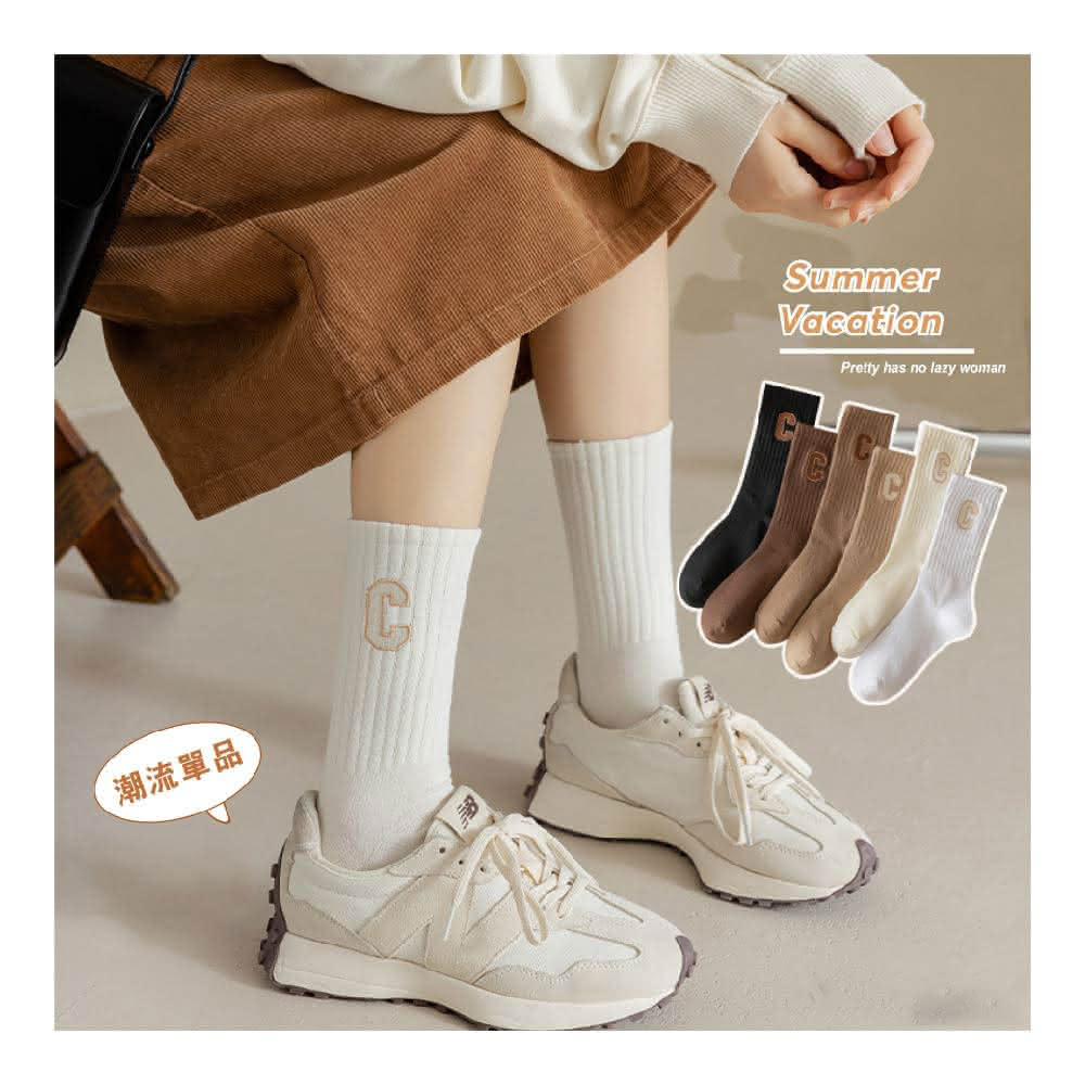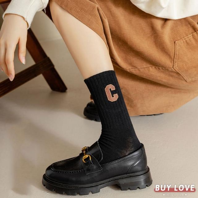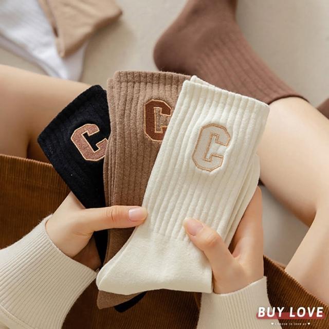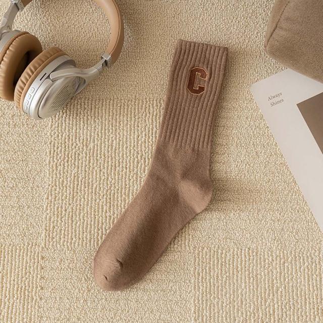 BUY LOVE 買到戀愛大地色系C字中筒襪W101長襪 襪子 中筒襪 襪子 男女襪 百搭 棉襪 休閒襪