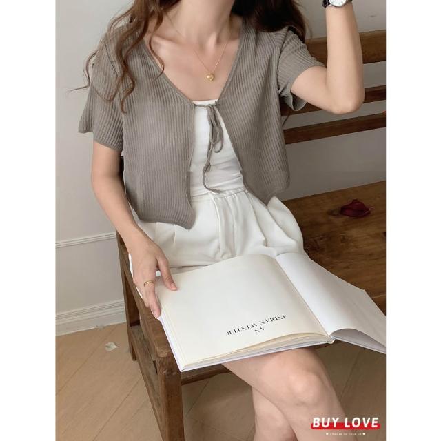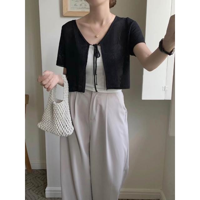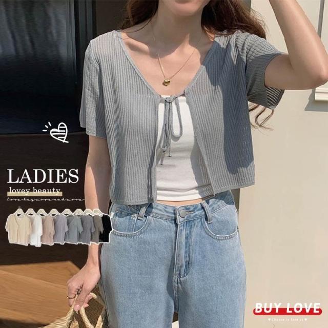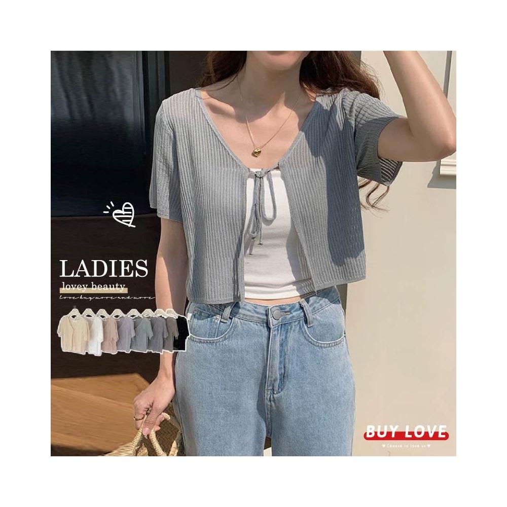 BUY LOVE 買到戀愛實拍透膚綁帶短袖罩衫 短外套 罩衫 防曬 短袖 女上衣 Y9070