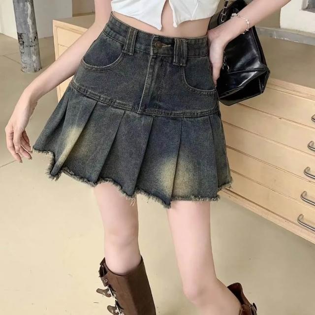 BUY LOVE 買到戀愛隔日到貨 復古水洗風牛仔百褶短裙 街頭 牛仔裙 短裙 百褶裙 水洗 復古【C0183】