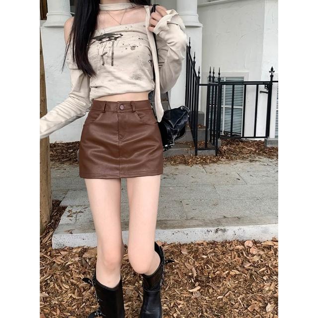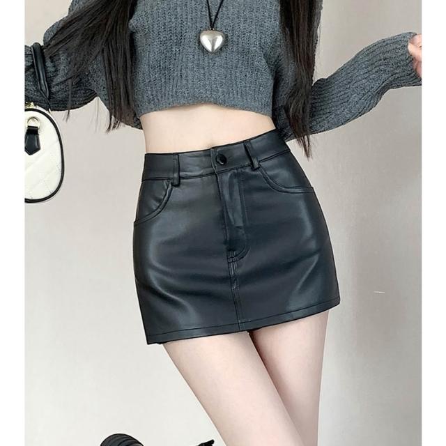 BUY LOVE 買到戀愛隔日到貨 高腰包臀A字皮短裙 多色 多碼 自帶安全褲 皮裙 褲裙 女裝 女下身【C6551】