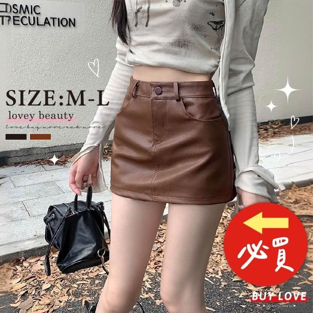 BUY LOVE 買到戀愛隔日到貨 高腰包臀A字皮短裙 多色 多碼 自帶安全褲 皮裙 褲裙 女裝 女下身【C6551】