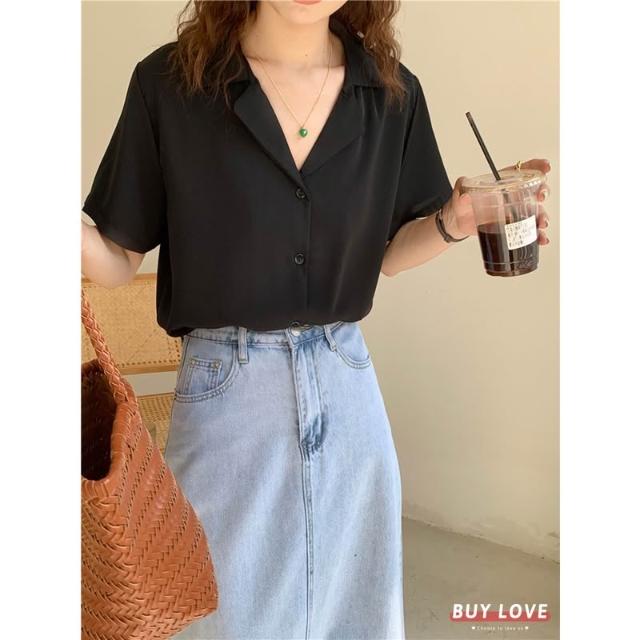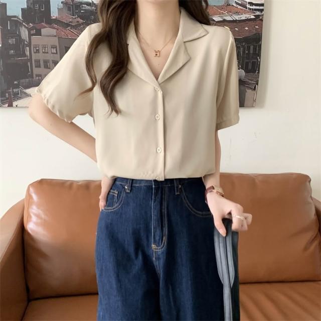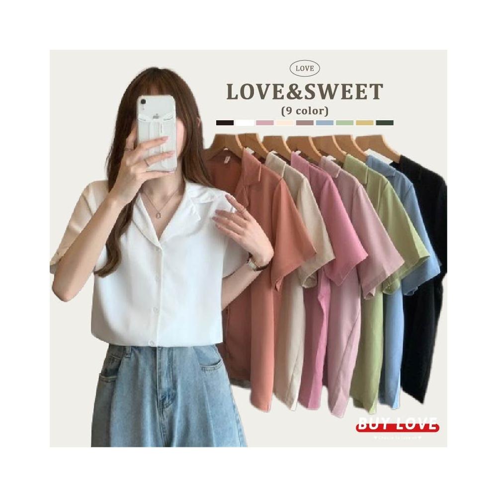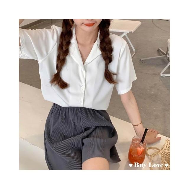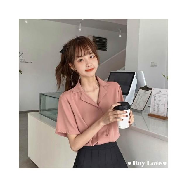 BUY LOVE 買到戀愛隔日到貨 原版短袖襯衫 西外 多巴胺穿搭 質感優 翻領襯衫 西外襯衫 雪紡襯衫【FM980】