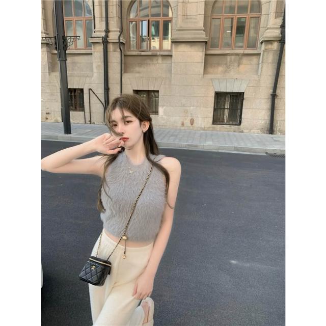 BUY LOVE 買到戀愛水貂毛 削肩針織背心 毛衣 背心 上衣 無袖背心 女裝【M7466】