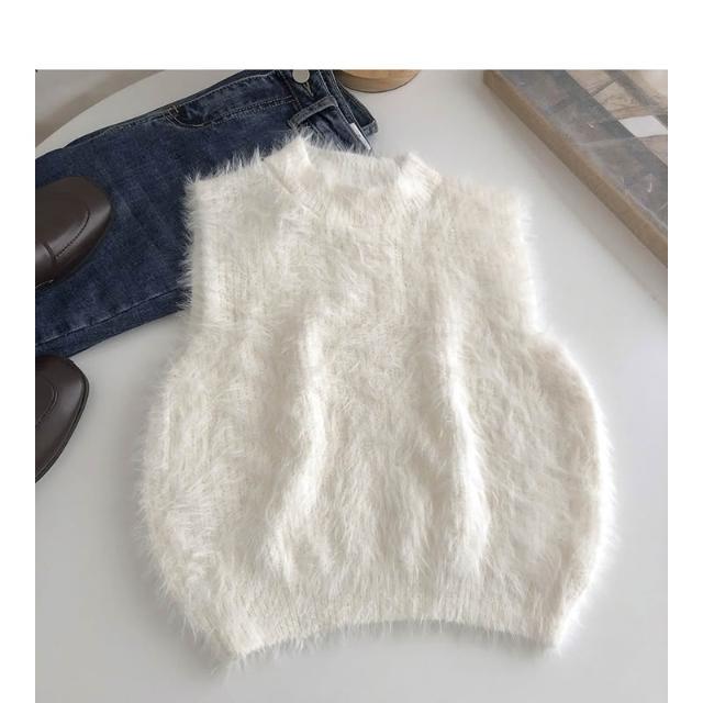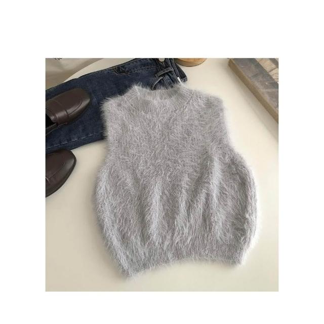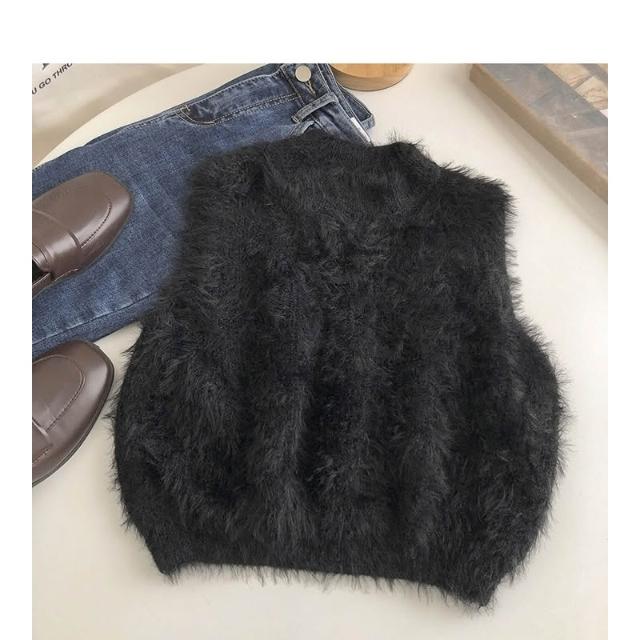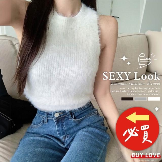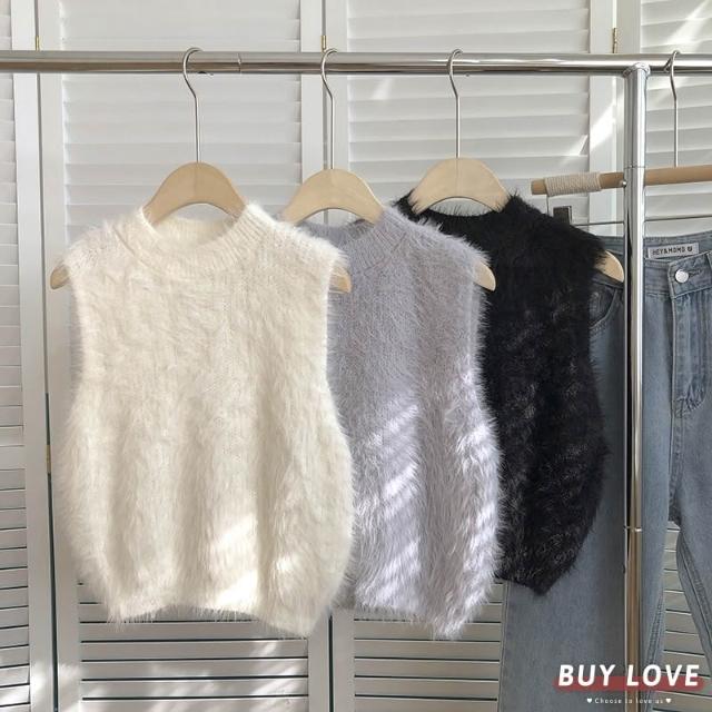BUY LOVE 買到戀愛水貂毛 削肩針織背心 毛衣 背心 上衣 無袖背心 女裝【M7466】