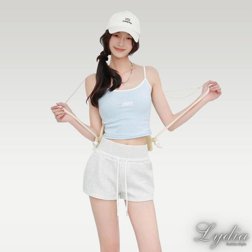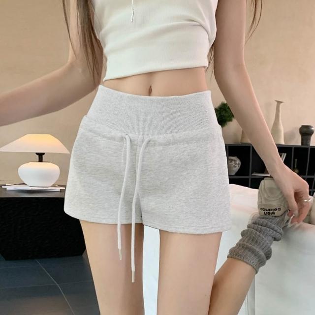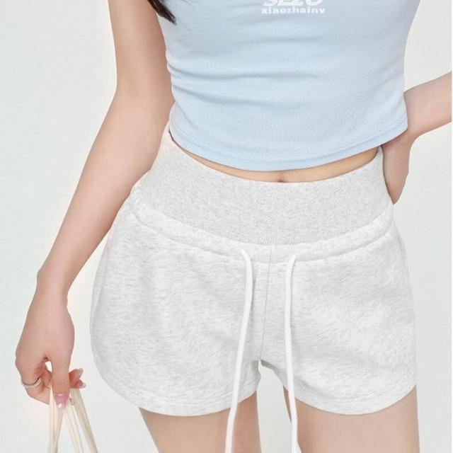 Lydia現貨 短褲 夏季新款美式抽繩休閒運動短褲-白灰色#05011212