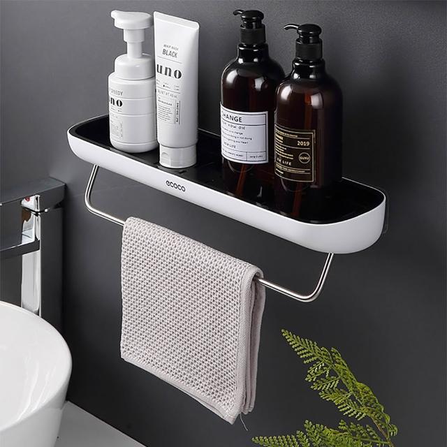 ecoco免打孔浴室置物架毛巾架-標配款(置物架 收納架 自黏收納架 牆壁收納架)