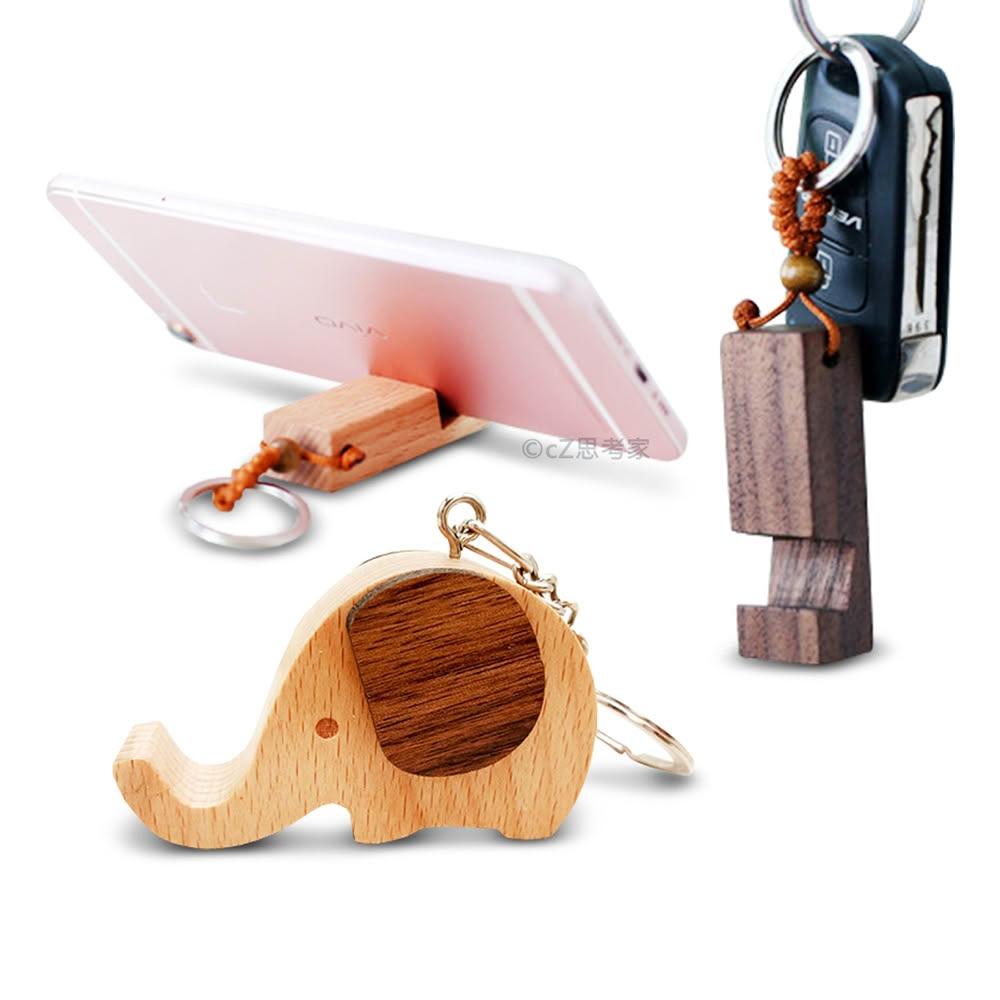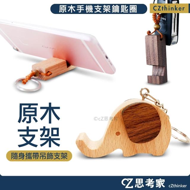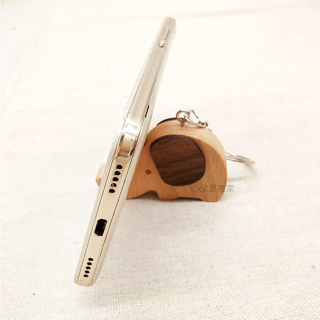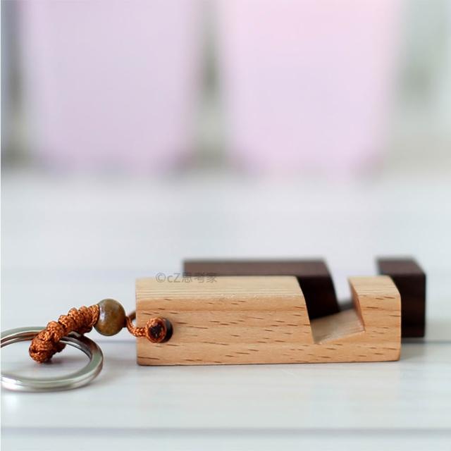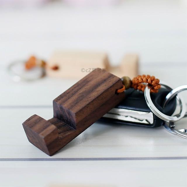 原木手機支架鑰匙圈 1入(簡便支架 輕便支架 手機支架 手機架 吊飾 鑰匙圈 木製支架)