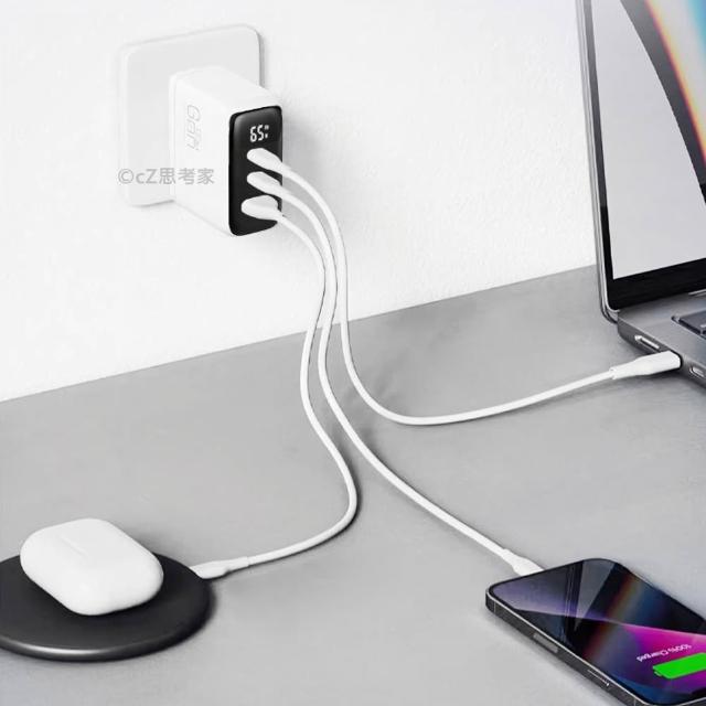 CYKEGan 氮化鎵 65W 三孔快速充電器 旅充頭 充電頭 充電轉接頭 充電轉接器 充電器 快充頭 PD QC 充電