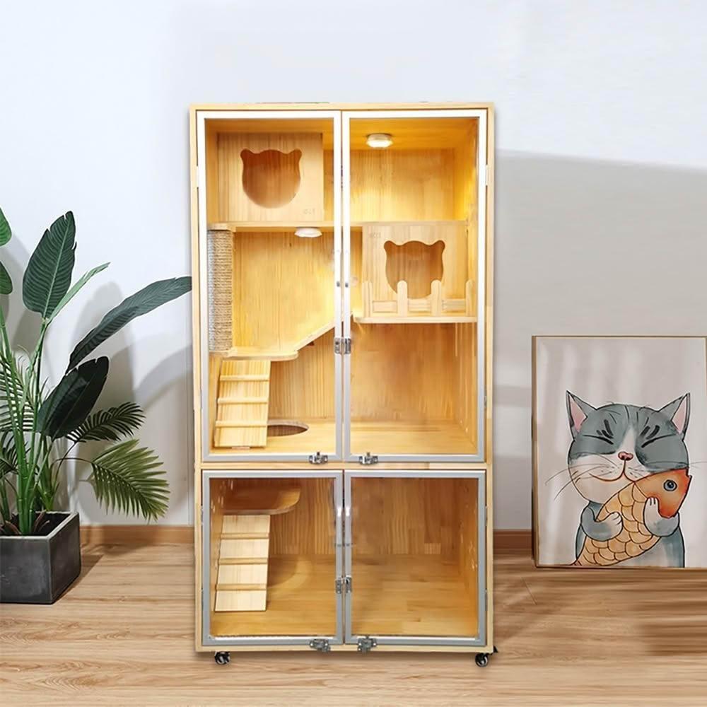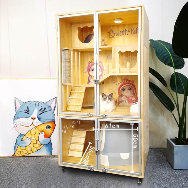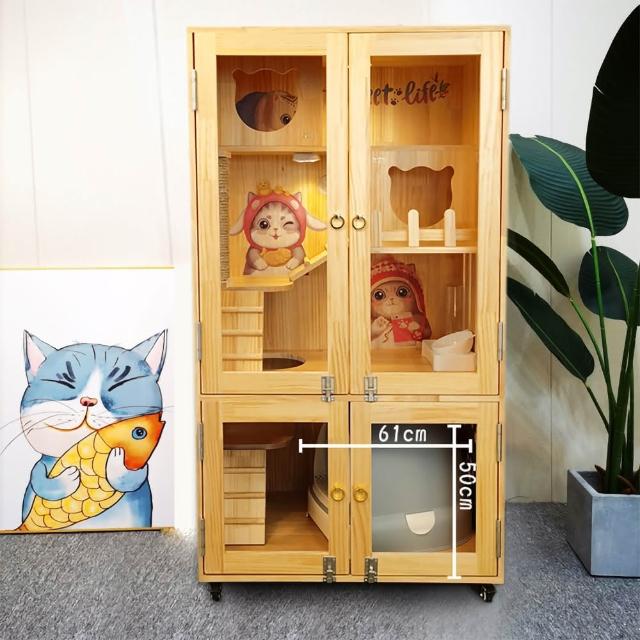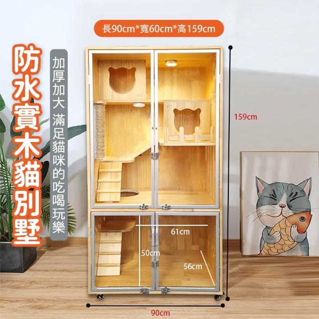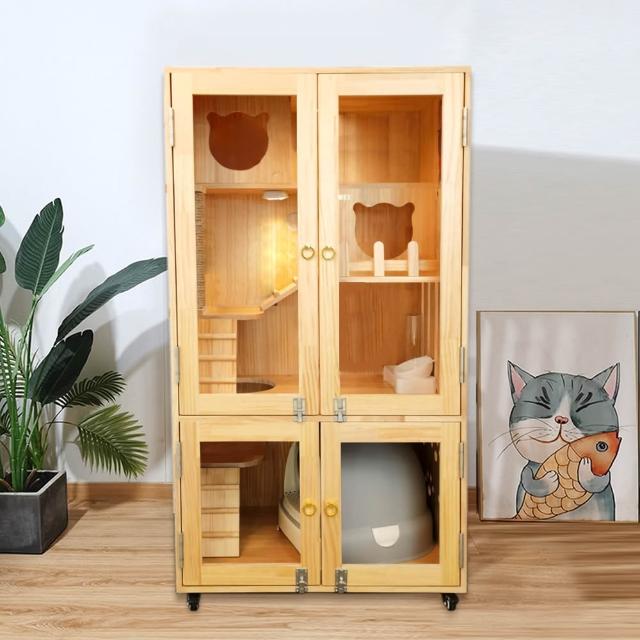 四開門防水實木貓別墅 貓籠子 家用豪華貓公寓 超大二層三層貓房子 貓櫃子貓舍貓屋貓窩