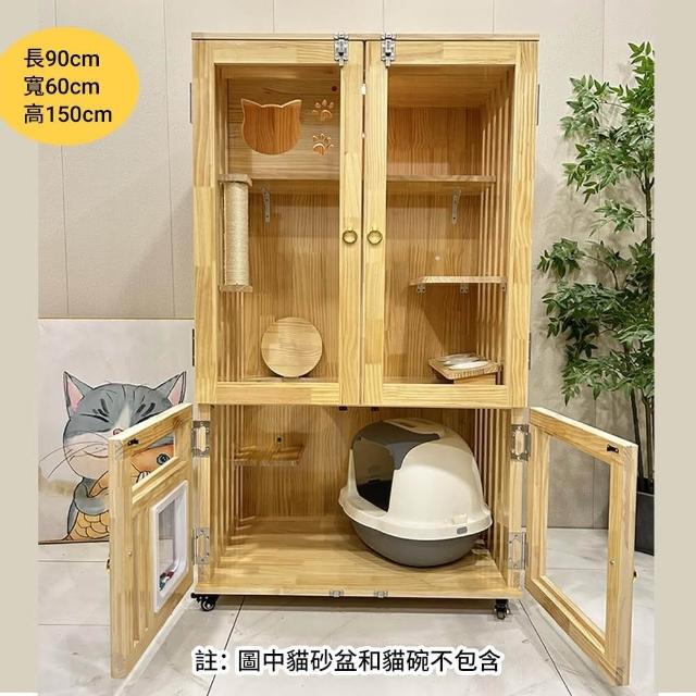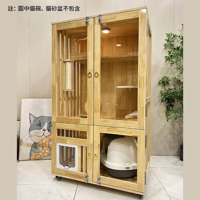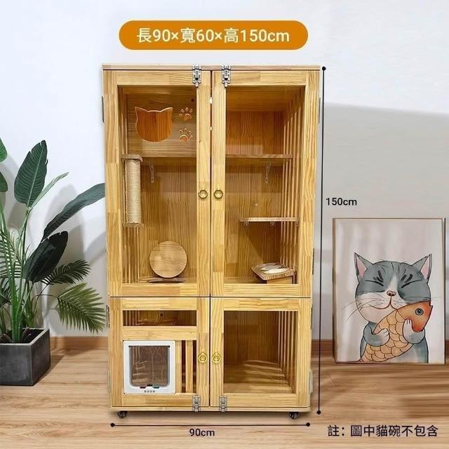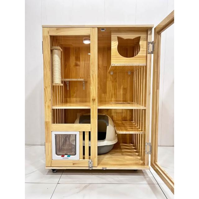 豪華實木貓別墅 帶自由門貓房子 實木防水貓別墅貓籠貓房子 貓咪籠子 室內貓屋 貓公寓 雙層貓舍貓櫃貓房