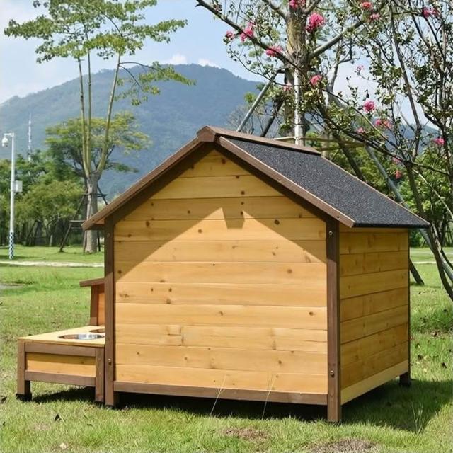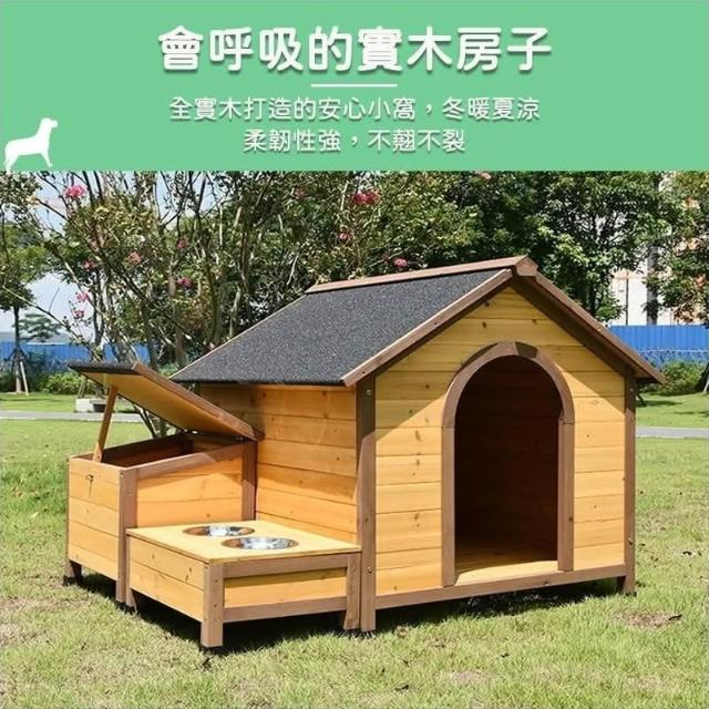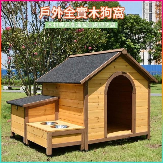 戶外狗籠 實木大型犬狗屋 狗狗別墅防雨防腐 帶食盆水盆實木製 狗窩四季通用 房子型狗舍