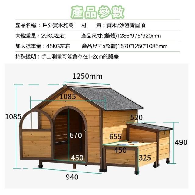 戶外狗籠 實木大型犬狗屋 狗狗別墅防雨防腐 帶食盆水盆實木製 狗窩四季通用 房子型狗舍