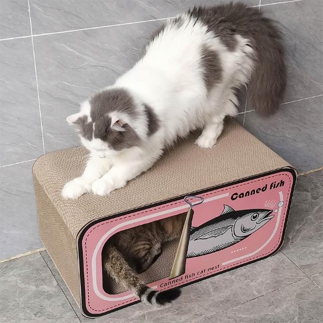 爆款罐頭貓抓板 耐磨耐用 高密度貓咪坐墊 貓玩具貓窩 貓咪磨爪板 寵物用品 多色可選黃色/灰色/粉色