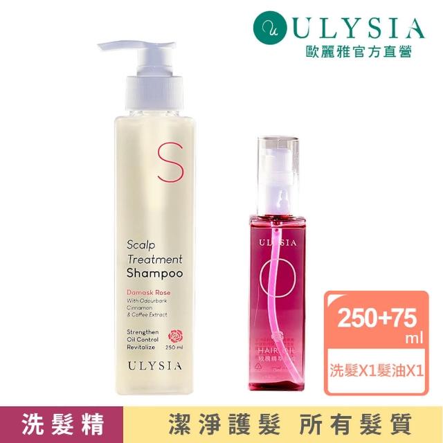 ULYSIA歐麗雅 玫瑰潔淨護髮組2入(頭皮調理洗髮精X1-玫瑰精油/玫瑰精萃髮油X1) 天然精油 滋養 強健髮根 告別頭皮困擾 敏感肌都適合 清爽無負擔 髮質不乾澀 無矽靈 台灣製 植物精華精油 鎖水保濕 柔順有彈性