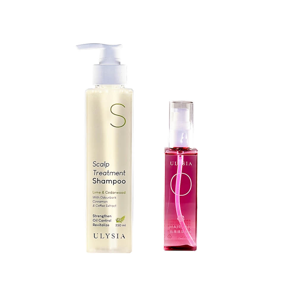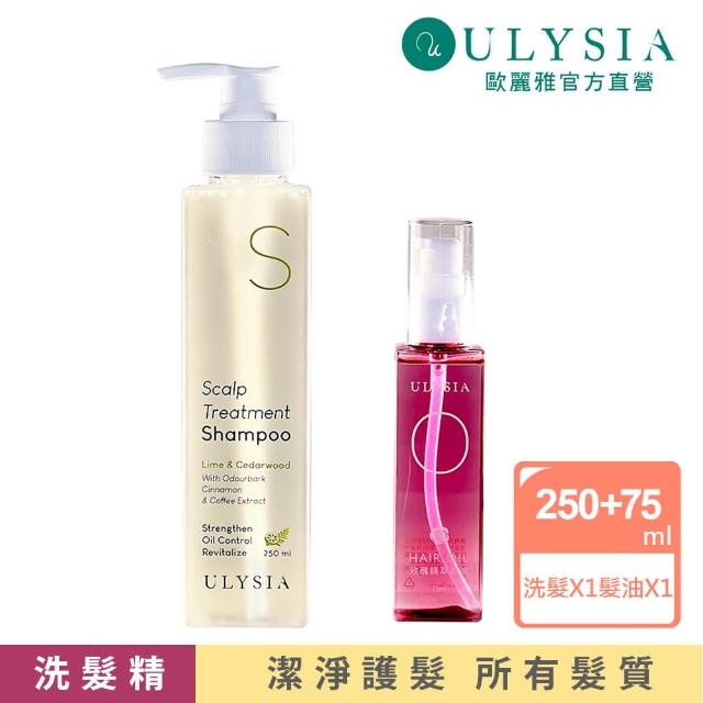 ULYSIA歐麗雅 玫瑰潔淨護髮組2入(頭皮調理洗髮精X1-青檬雪松精油/玫瑰精萃髮油X1) 天然精油 滋養 強健髮根 告別頭皮困擾 敏感肌都適合 清爽無負擔 髮質不乾澀 無矽靈 台灣製 植物精華精油 鎖水保濕 柔順有彈性