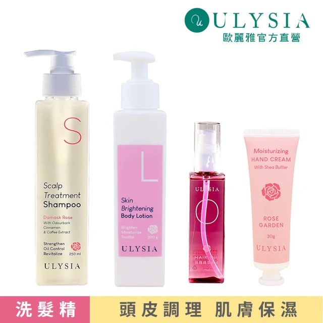 ULYSIA歐麗雅 玫瑰花園保養組(含土肉桂植萃/調理頭皮pH值) 天然精油 滋養 強健髮根 告別頭皮困擾 敏感肌都適合 清爽無負擔 髮質不乾澀 無矽靈 台灣製