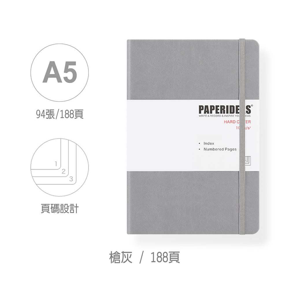 PAPERIDEASA5 子彈筆記本 硬皮188頁 (無酸紙內頁/多色可選)