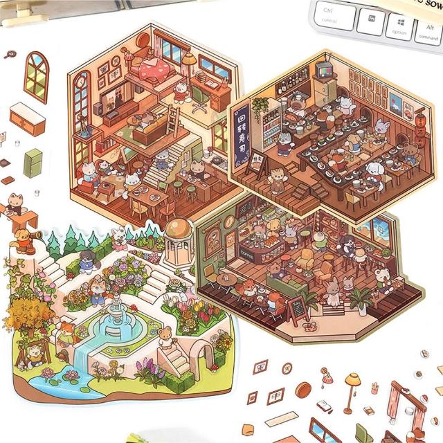 Infeel.Me 造景貼紙 今日營業中合集1 共24款 PET 2.5D 微縮景觀 立體場景 可愛卡通
