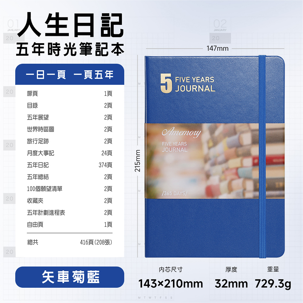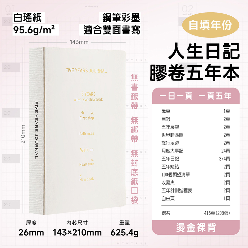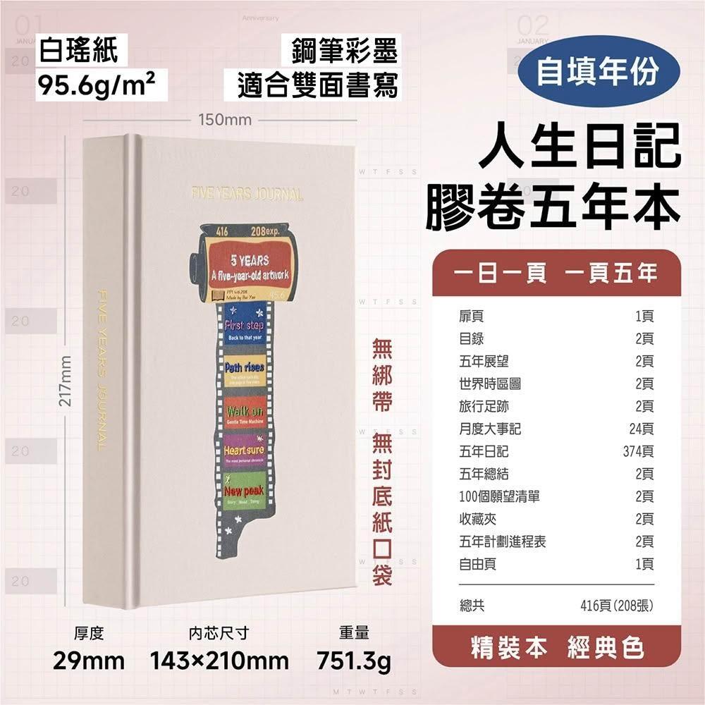 PAPERIDEASA5 硬皮 自填式5年本 9款 時光記憶本 手帳本 筆記本 記事本 日記本