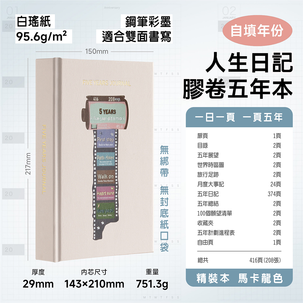 PAPERIDEASA5 硬皮 自填式5年本 9款 時光記憶本 手帳本 筆記本 記事本 日記本