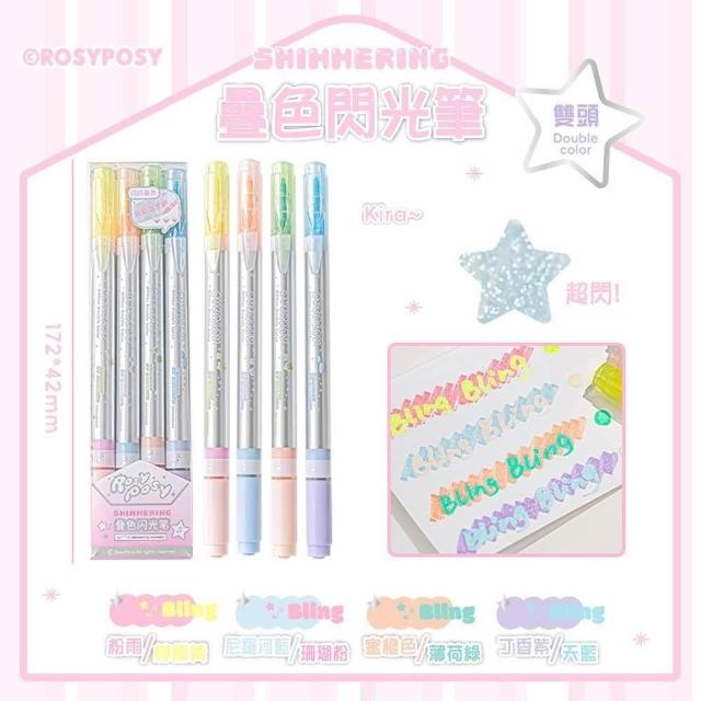 RosyPosy 疊色閃光筆 2款 雙頭 4支入