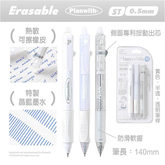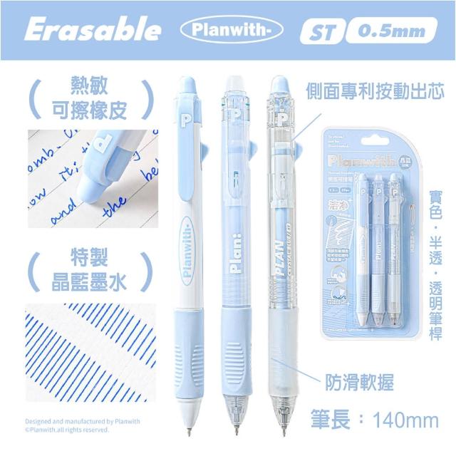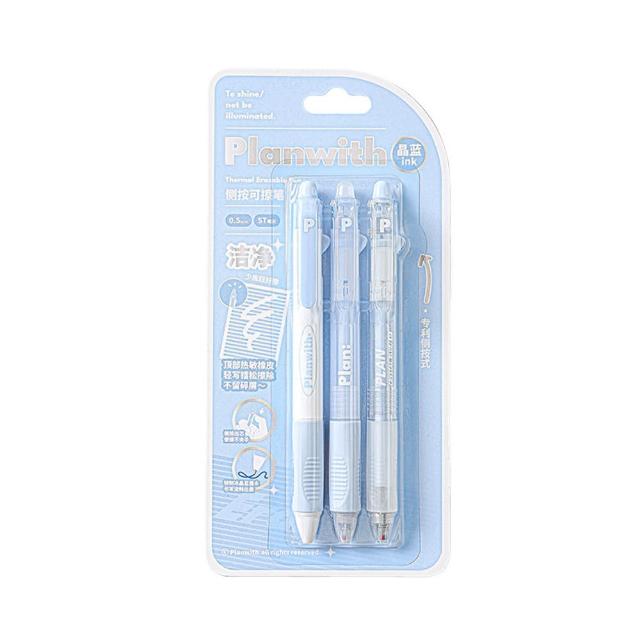 Planwith 3支入 側按可擦中性筆 2款 0.5mm