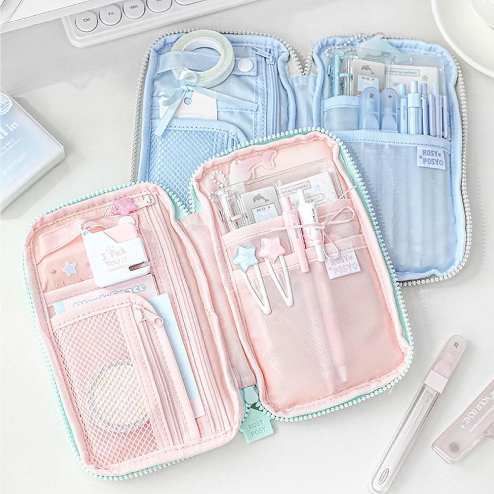 RosyPosy 軟呼呼燒餅包 4款 手帳包 文具包 護照包 側提把 透明痛窗 填充杜邦棉 多巴胺色系