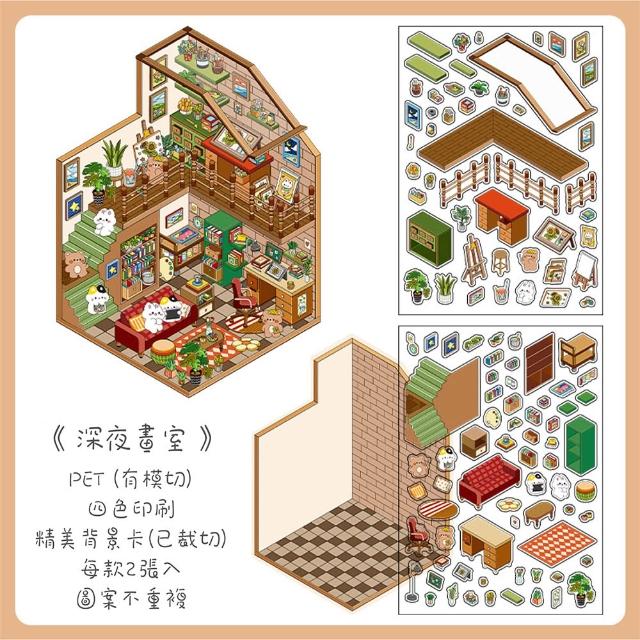 Infeel.Me 造景貼紙 我的小屋系列1 20款 PET 2.5D 微縮景觀 立體場景 可愛卡通