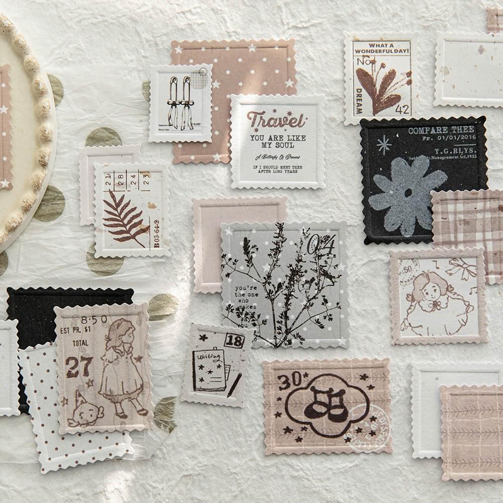 陌墨 貼紙包 鹽色市集 6款 多材質 凸版浮雕 仿郵票 復古貼紙 手帳貼紙 拼貼貼紙 裝飾貼紙 封口貼