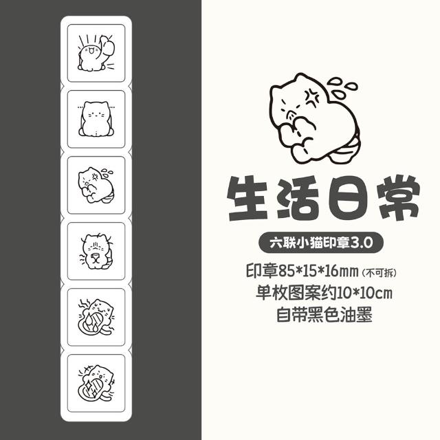 芯陌 六聯小貓印章3.0 4款 日記印章 可愛印章 打卡印章 手帳印章 光敏印章 按鈕印章 浸透印章