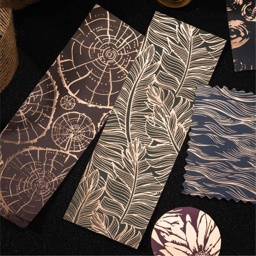 番茄醬少女 素材紙 肌理密語系列 6款 白牛皮紙+燙玫瑰金 打底紙 背景紙 手帳素材 拼貼素材