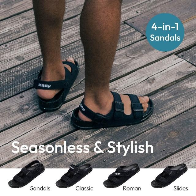 MijilyMijily AIR 經典全黑 大氣涼拖鞋(可變換涼鞋面、舒適軟腳床、旅行、足弓、久站、可回收、金選獎)