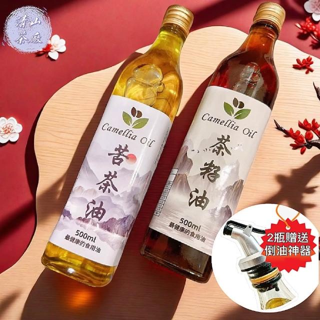 清山茶廠茶籽油苦茶油雙頂級好油組贈倒油神器頂級苦茶油500ml+茶籽油500ml