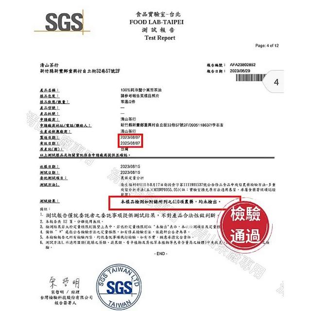 清山茶廠小果苦茶油500ml二入組雙檢驗小果苦茶油
