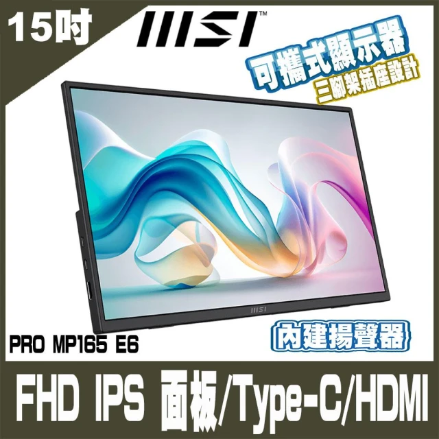 MSI 微星PRO MP165 E6 可攜式螢幕-16型/FHD/Type-C/喇叭/IPS